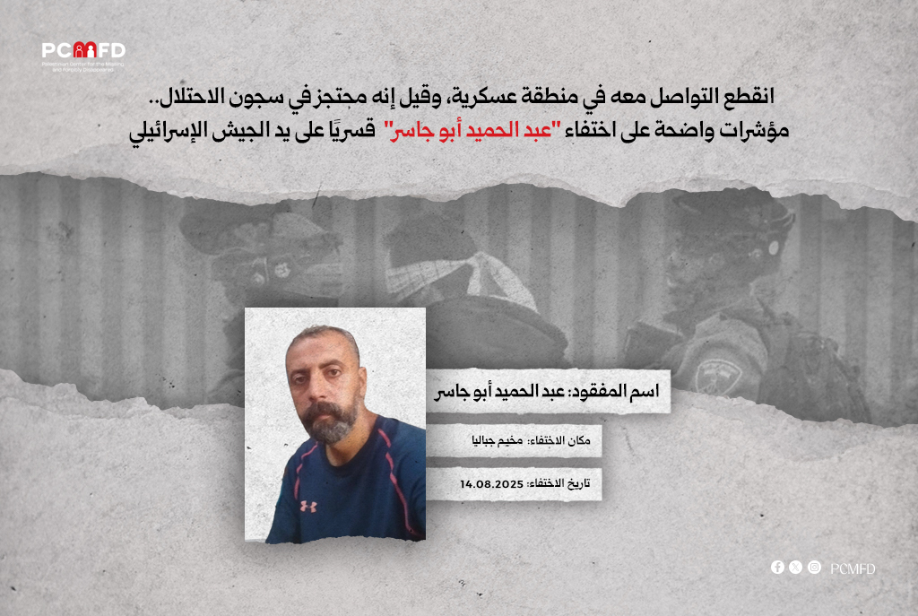 إن انقطاع الاتصال المفاجئ بعبد الحميد أبو جاسر، ووقوع الحادثة في منطقة تخضع لسيطرة القوات العسكرية الإسرائيلية، إلى جانب إفادات موثوقة عن مشاهدته داخل مراكز احتجاز إسرائيلية، دون صدور أي إعلان رسمي أو اعتراف بمكان احتجازه، يشكل مؤشرات قوية على تعرضه للاعتقال أو الإخفاء القسري على يد قوات الاحتلال الإسرائيلي.